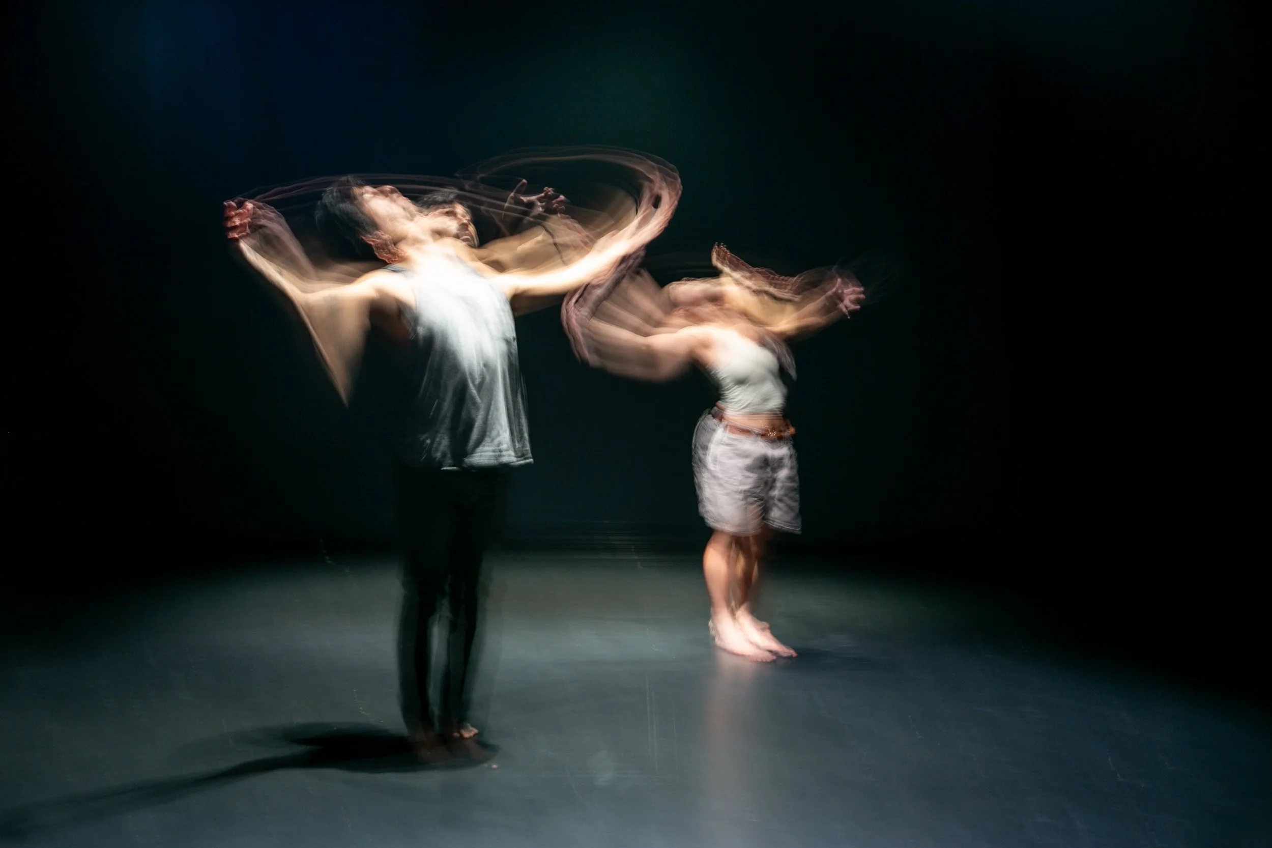 While both dancers are in space together, each performance the dancers rotate who opens the show. Subsequently, which role they perform. Consider coming to more than one performance, sitting in a different spot, and test your own capacity of “more” with us.