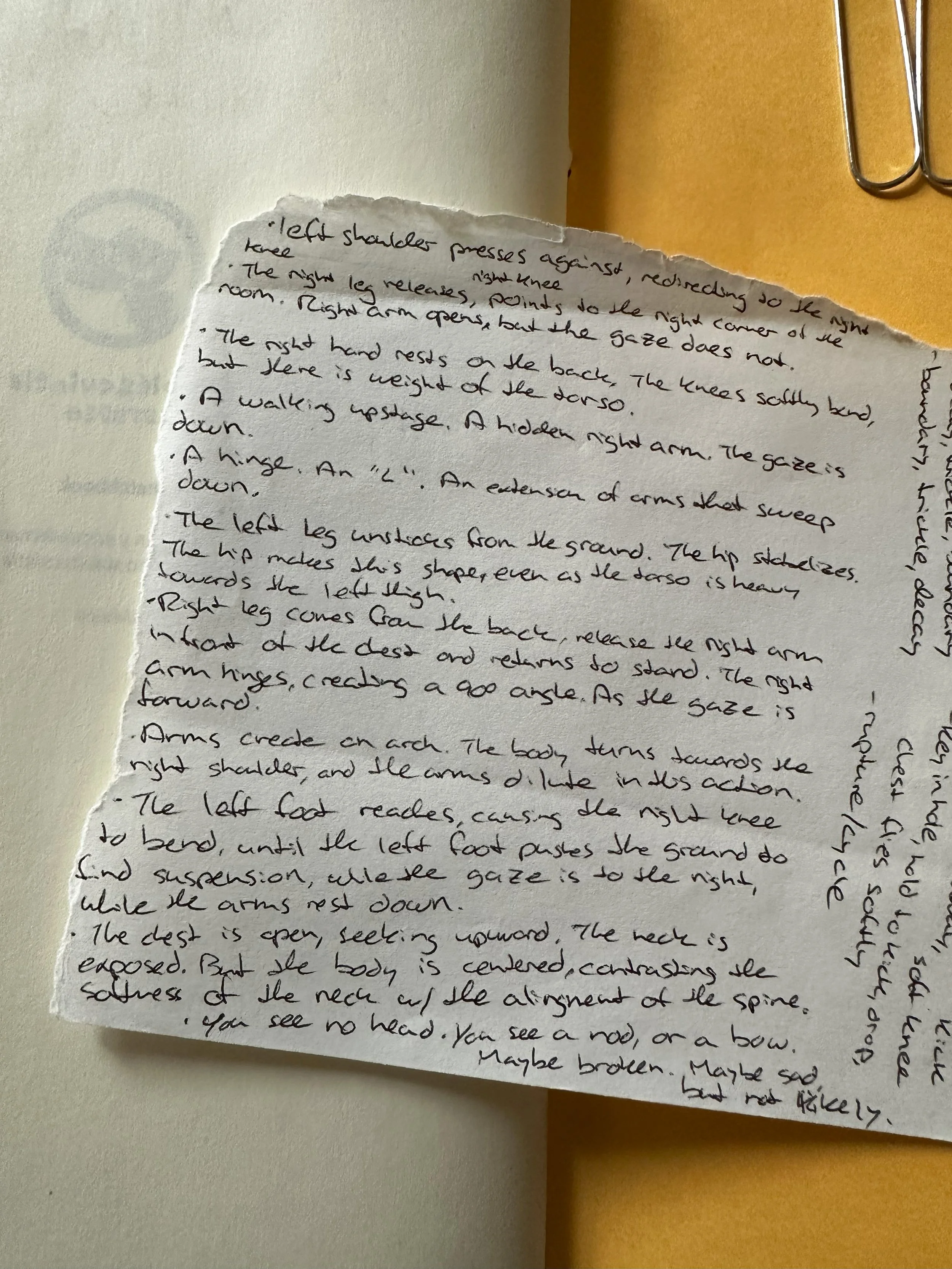 “José’s notations of the movement live somewhere between practical and poetic, a blend of metaphor and concrete steps. What is the essence of the dance?” - Emily Gastineau